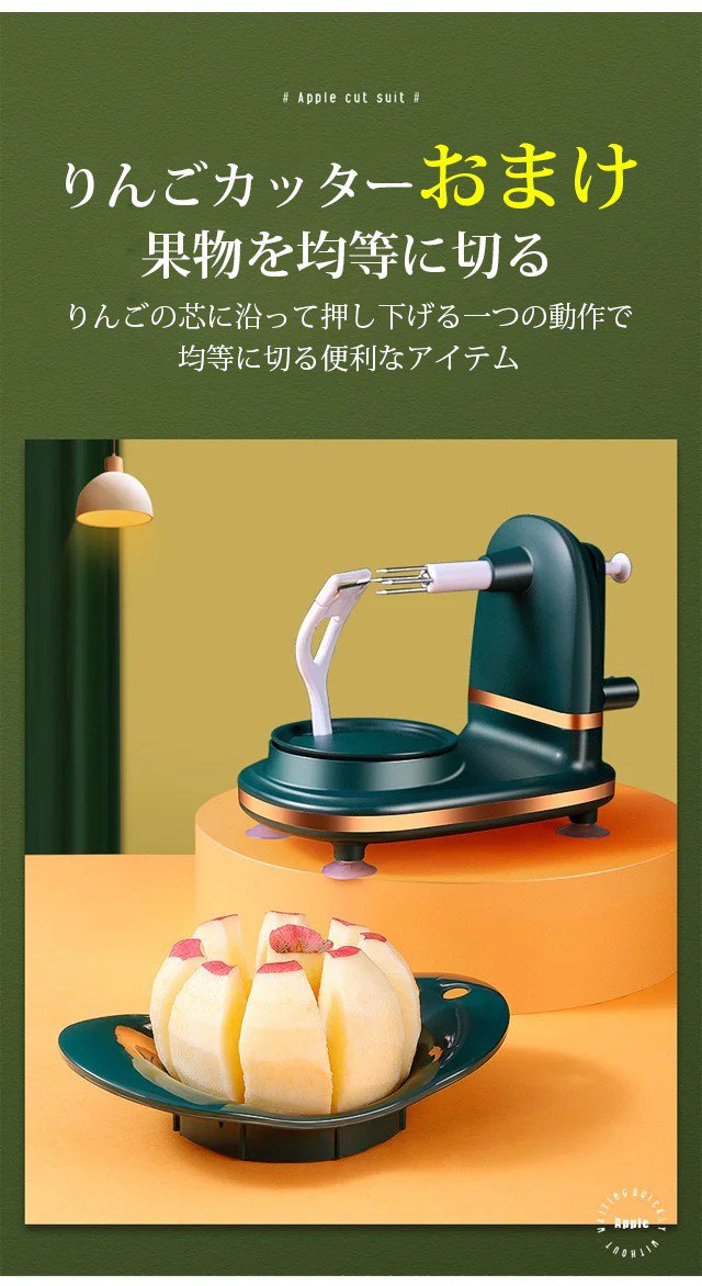 【回転式皮むき器】切れ味が良い、手を傷つけない、5秒で剥ける、様々な果物に適用、吸盤付き、お手入れ簡単